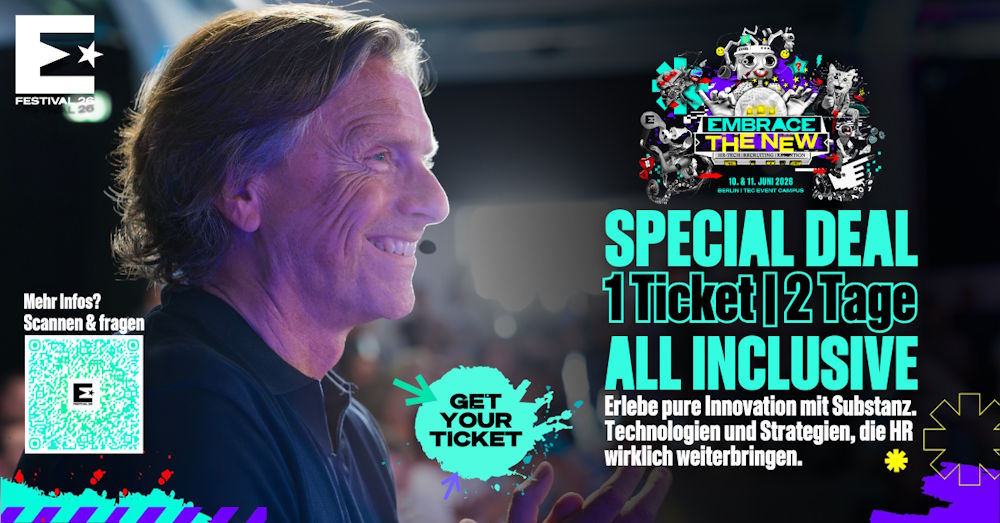 Enno: Und für alle, die auf Nummer sicher gehen wollen: Mit dem Code recrutainmentef26 gibt’s exklusiv 10% Rabatt auf das Ticket. Also: Code eintippen, Geld sparen und im Juni mit uns in Berlin die Zukunft feiern.