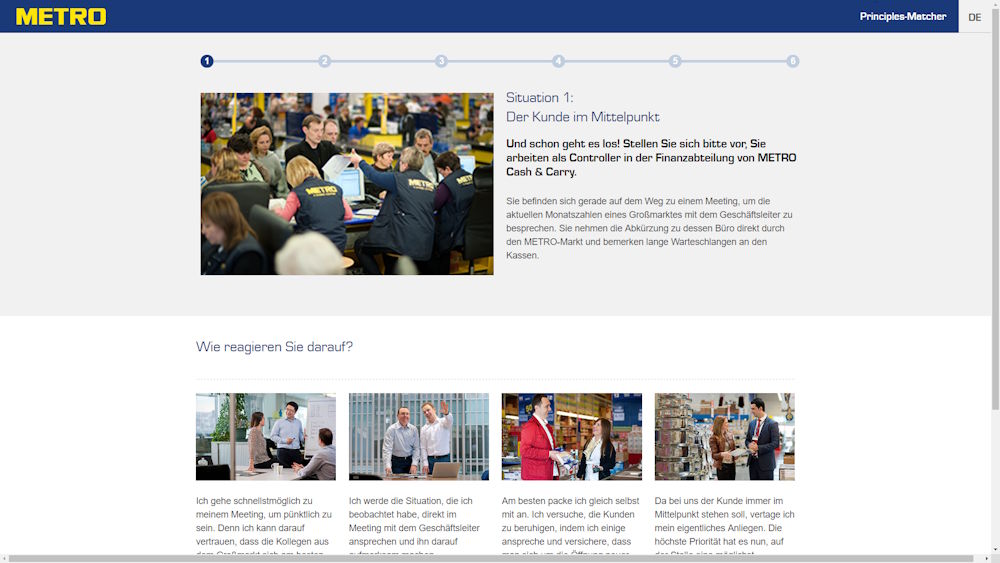 Ein Situational Judgement Test unterstützt nicht nur Unternehmen dabei, passende Kandidatinnen und Kandidaten auszuwählen, sondern bietet auch Bewerbenden selbst einen echten Mehrwert. Die im Test dargestellten Szenarien entstehen in enger Zusammenarbeit mit dem jeweiligen Unternehmen und orientieren sich an Situationen, wie sie im Arbeitsalltag tatsächlich vorkommen. Dadurch werden typische Aufgaben, Entscheidungsprozesse und Herausforderungen aufgegriffen, mit denen Mitarbeitende in der entsprechenden Rolle konfrontiert sein können. Für Bewerbende wird der Auswahlprozess damit gleichzeitig zu einer ersten Gelegenheit, das Unternehmen und die Tätigkeit näher kennenzulernen. Statt nur über Aufgaben zu lesen, versetzen sie sich aktiv in konkrete Arbeitssituationen und überlegen, wie sie handeln würden. So entsteht bereits früh ein Eindruck davon, wie der Arbeitsalltag aussehen könnte und welche Art von Entscheidungen oder Zusammenarbeit im Job gefragt ist.