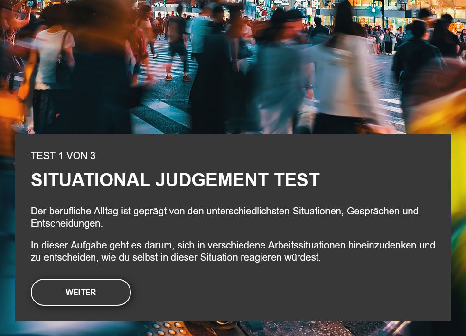 Genau hier setzt ein Situational Judgment Test (SJT) an. In einem solchen Test werden realistische Szenarien beschrieben, zu denen verschiedene mögliche Reaktionen angeboten werden. Die Teilnehmenden bewerten oder wählen aus, wie sie in der jeweiligen Situation handeln würden. Dadurch lassen sich Hinweise darauf gewinnen, wie Personen mit typischen Herausforderungen im Berufsalltag umgehen. Man spricht manchmal entsprechend auch von Situationsbeurteilungen oder „mentalen Arbeitsproben“.