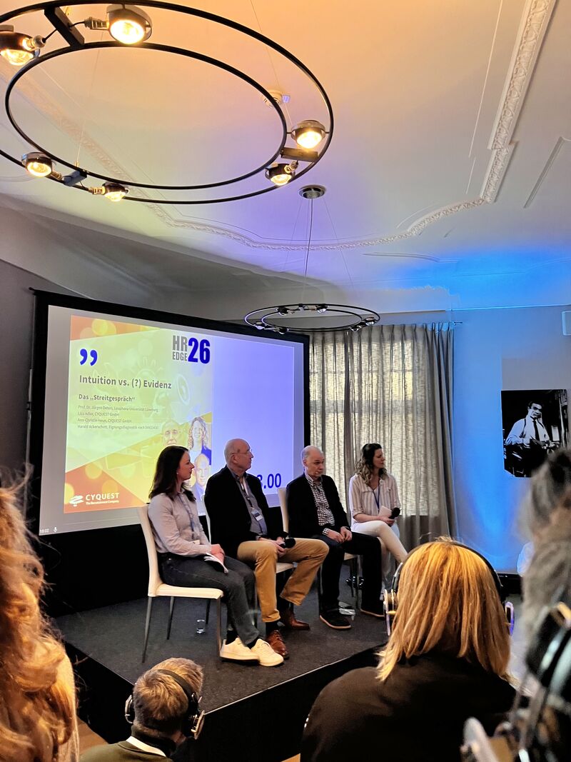Ein besonderes Highlight der #HREdge26 war der live vor Ort und vor Publikum aufgenommene Video-/Podcast zum Thema Quality of Hire. Tim Verhoeven, Melanie Habrich, Vanessa Reynolds und Prof. Lars Jansen haben auf unheimlich hohem Niveau diskutiert, was QofH eigentlich ist und wie man diese erfassen kann.