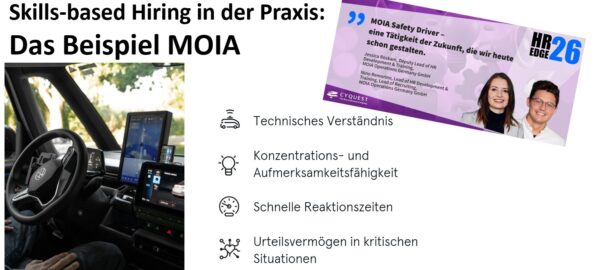 Ende März drehte sich auf der #HREdge26 alles um das Thema „Skills“. Ein aus meiner Sicht wirkliches Highlight war dabei der Vortrag von Jessica Röskam und Nino Remorino von dem zu VW gehörenden Ridepooling-Anbieter MOIA. Jessica und Nino haben dabei vorgestellt, wie es ihnen gelingt, für das Berufsbild sog. „Safety Driver“ zu rekrutieren. Dieser Case … Skills-based Hiring: Wie rekrutiert man Safety-Driver, Jessica Röskam und Nino Remorino? weiterlesen